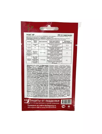 Инсектицид для защиты картофеля от колорадского жука; смородины – от тли; цветочных культур – от тли, белокрылки, трипсов, щитовок, ложнощитовок, почвенных мушек.