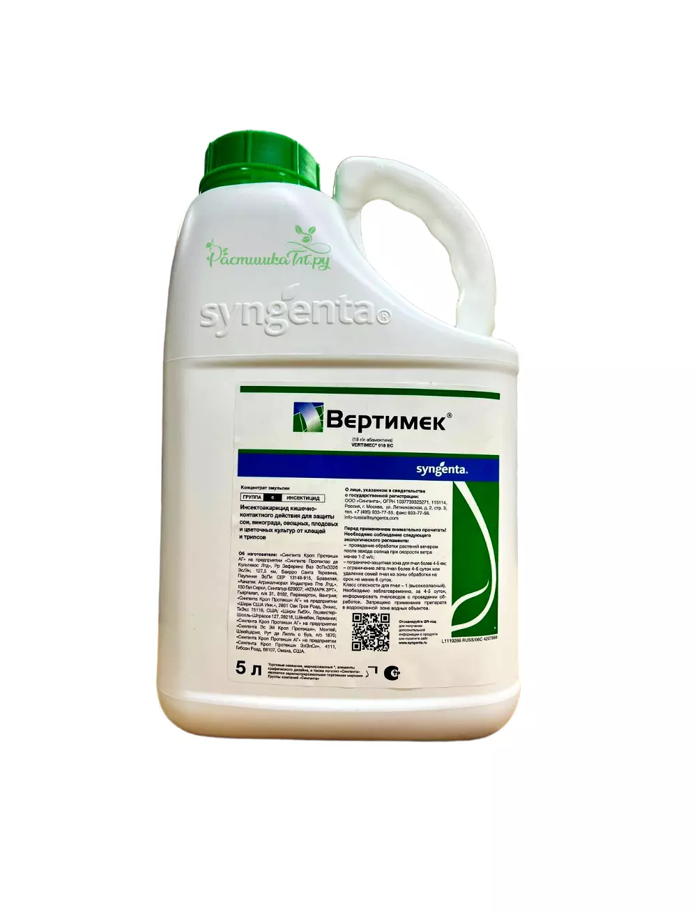 Вертимек - инсектоакарицид кишечно-контактного действия. Преимущества: • Высокая эффективность в защите растений от вредителей. • Эффективность против клещей, резистентных к другим акарицидам; отличный партнер в антирезистентных программах. • Минимально воздействует на полезную энтомофауну. • Подавляет вредителей на верхней и нижней сторонах листа. • Трансламинарная активность: быстро (через 2 часа полностью) проникает в ткани растения. • Длительный (до 4 недель) период защитного действия позволяет сократить количество обработок. • Обеспечивает получение качественных растений. • Не оказывает фитотоксичного действия на растения. • Не оставляет пятен на растениях. Срок ожидания: 3 дня. Вредители: западный цветочный трипс, клещи, оранжерейный трипс, паутинные клещи, табачный трипс, яблонная медяница. Производитель: Швейцария.