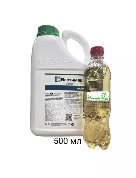 Вертимек - инсектоакарицид кишечно-контактного действия. Преимущества: • Высокая эффективность в защите растений от вредителей. • Эффективность против клещей, резистентных к другим акарицидам; отличный партнер в антирезистентных программах. • Минимально воздействует на полезную энтомофауну. • Подавляет вредителей на верхней и нижней сторонах листа. • Трансламинарная активность: быстро (через 2 часа полностью) проникает в ткани растения. • Длительный (до 4 недель) период защитного действия позволяет сократить количество обработок. • Обеспечивает получение качественных растений. • Не оказывает фитотоксичного действия на растения. • Не оставляет пятен на растениях. Срок ожидания: 3 дня. Вредители: западный цветочный трипс, клещи, оранжерейный трипс, паутинные клещи, табачный трипс, яблонная медяница. Производитель: Швейцария.